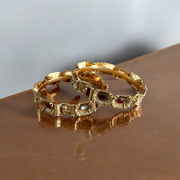 Designs: Discover a diverse selection of bangle designs, from classic and timeless to modern, royal and chic. Our collection includes plain, engraved, gemstone-studded, and intricate filigree designs, ensuring there's something for every style.