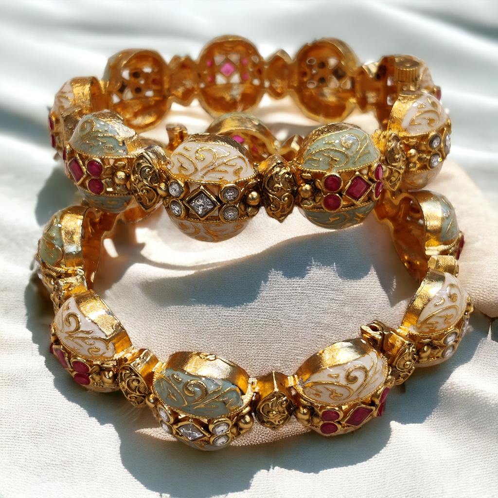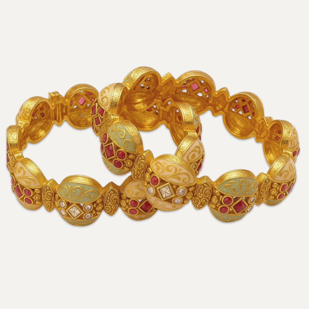 Explore an array of handcrafted bangles that effortlessly blend tradition and contemporary style. Whether you're dressing up for a special occasion or adding a touch of elegance to your festive look, our bangles are the perfect choice. Each piece is meticulously crafted to enhance your beauty and complement your unique personality.