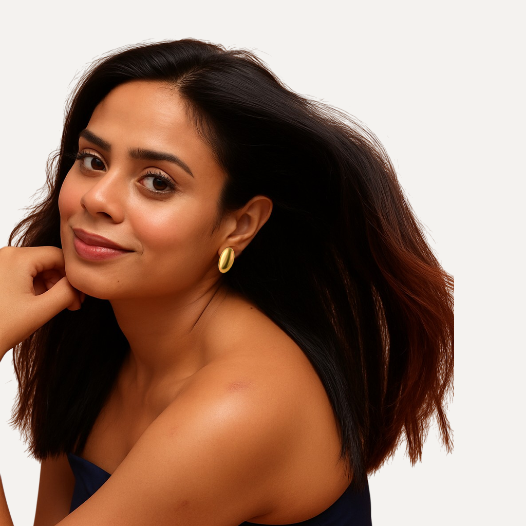 A perfect blend of simplicity and sophistication, these gold-toned oval studs bring understated elegance to every outfit — from boardroom looks to evening soirées.