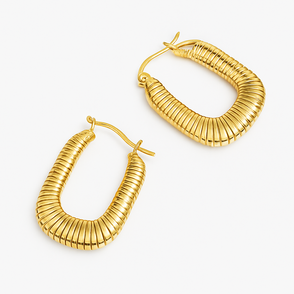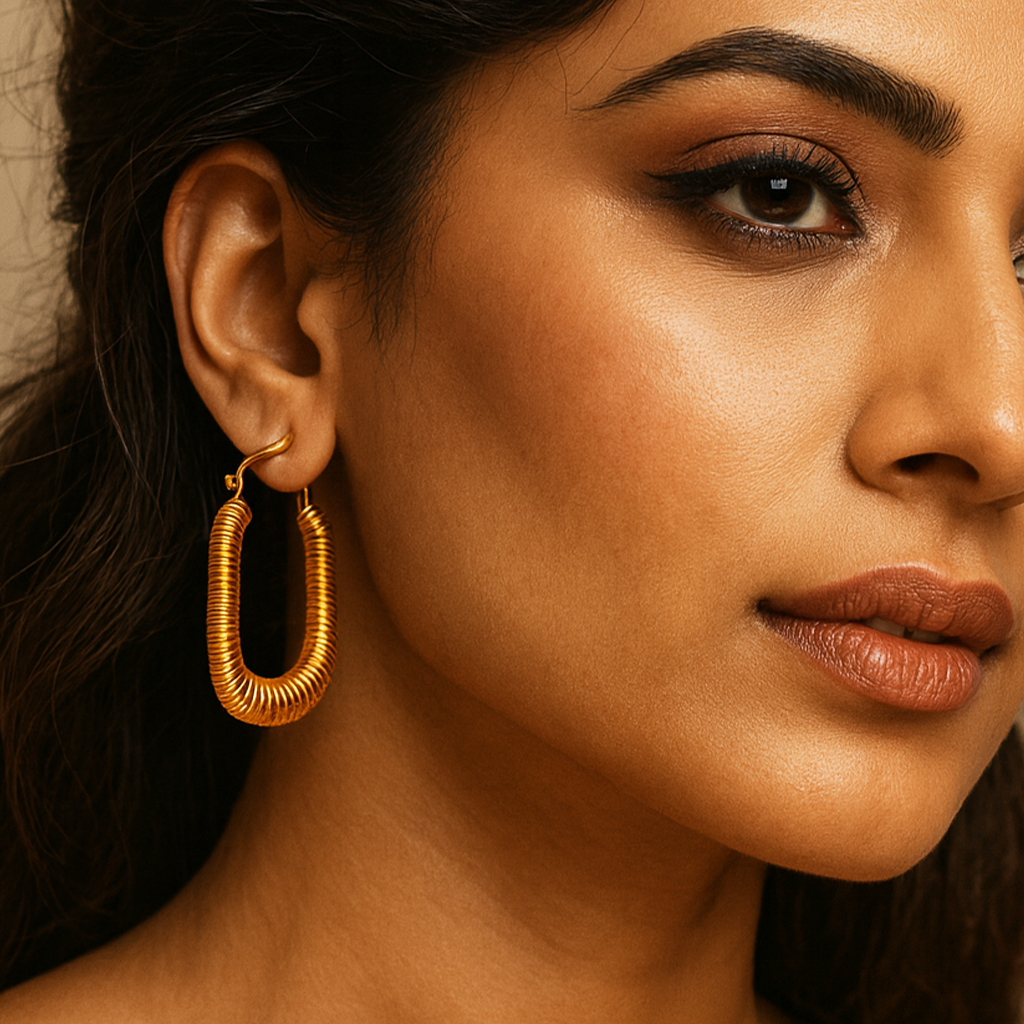 Elevate your everyday look with Garnisha’s Elegant Gold-Tone Oval Hoop Earrings. Crafted with a smooth, mirror-polished finish, these hoops combine contemporary design with timeless charm. Ideal for office wear or evening events, they offer durability and shine without the weight of traditional metal. Nickel-free and skin-friendly, these earrings are your perfect go-to accessory for effortless elegance.