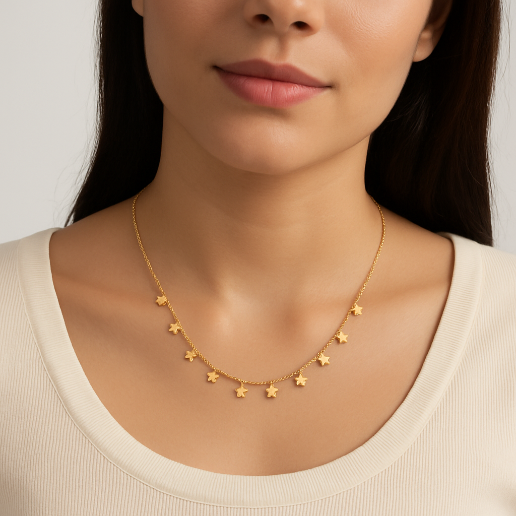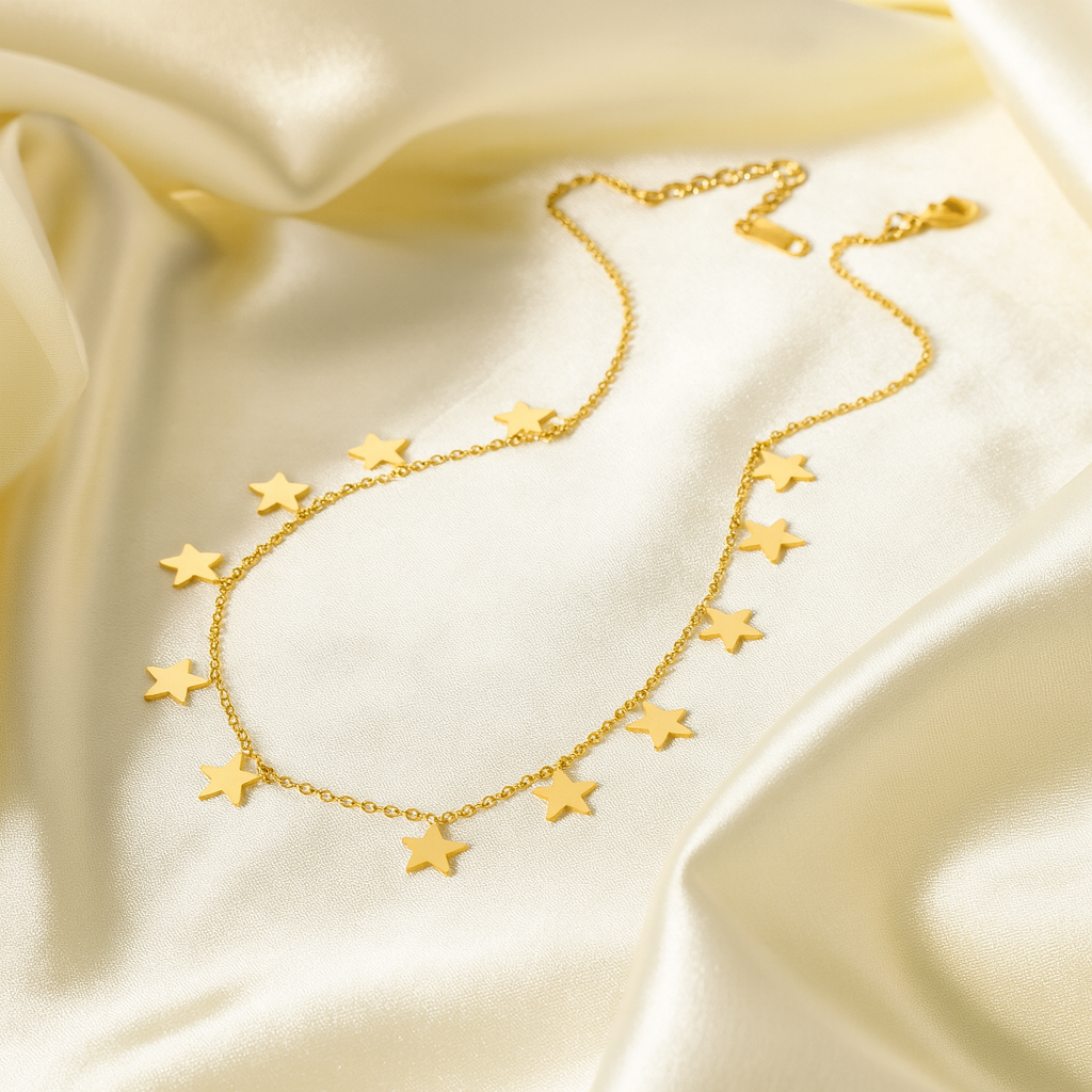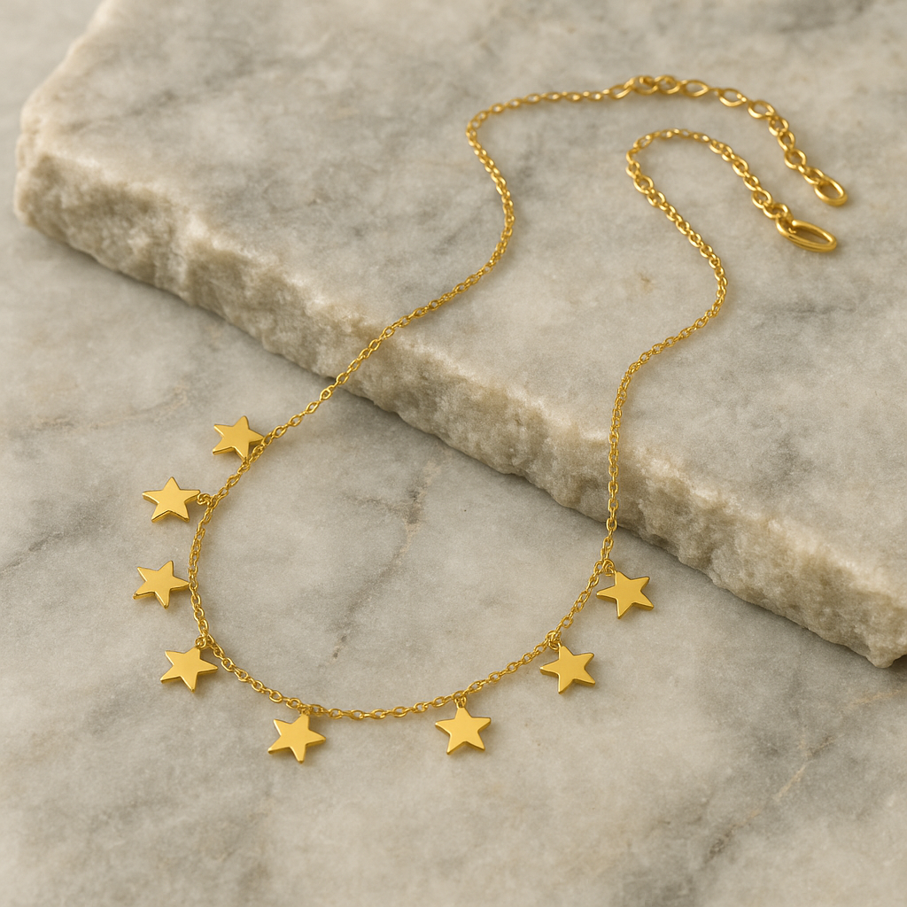 • Celestial Charm – Adorned with delicate golden stars, this necklace brings a touch of cosmic beauty to your everyday style.